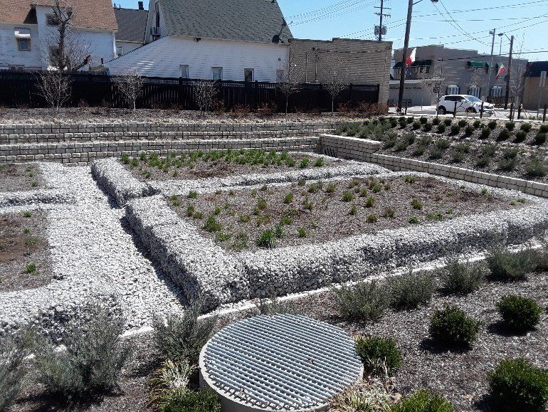 E&S Services with the help of Environmental Design Group worked to spruce up this particular site where weeds had overtaken some areas, mulch was needed, and a small area of permeable pavers needed cleaning. When it was all finished the site looked back to new and a great feature in the center of a community that is working towards a renaissance.