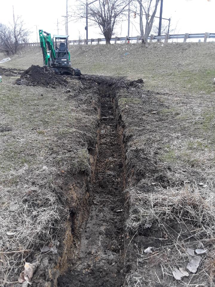 E&S Services with the help of Environmental Design Group worked together to solve a major erosion problem on this green infrastructure site for Northern Ohio Regional Sewer District. In this case there was too much surface water flow concentrated in one area which was causing erosion on site that needed to be mitigated. E&S installed a 150 ft. French drain and later implemented decorative rock channels utilizing existing materials on site to control the water on its path to the bio retention cell to improve the overall functionality of the site.